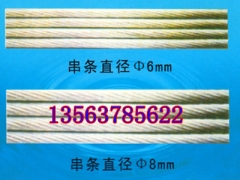 技术参数及产品规格:串销直径(mm)¢8、¢9;长度规格(mm)650、800、1000、1200、1400条 1.铠装不锈钢串条采用高强度不锈钢丝特殊缠绕绳心,外包耐磨不锈钢皮,强度大寿命长。2.规格齐全。按长度粗细分为:Ф7Х800mm、Ф7Х1000mm、Ф7Х1200mm、Ф9Х800mm、Ф9Х1000mm、 Ф9Х1400mm。Ф9Х1200mm